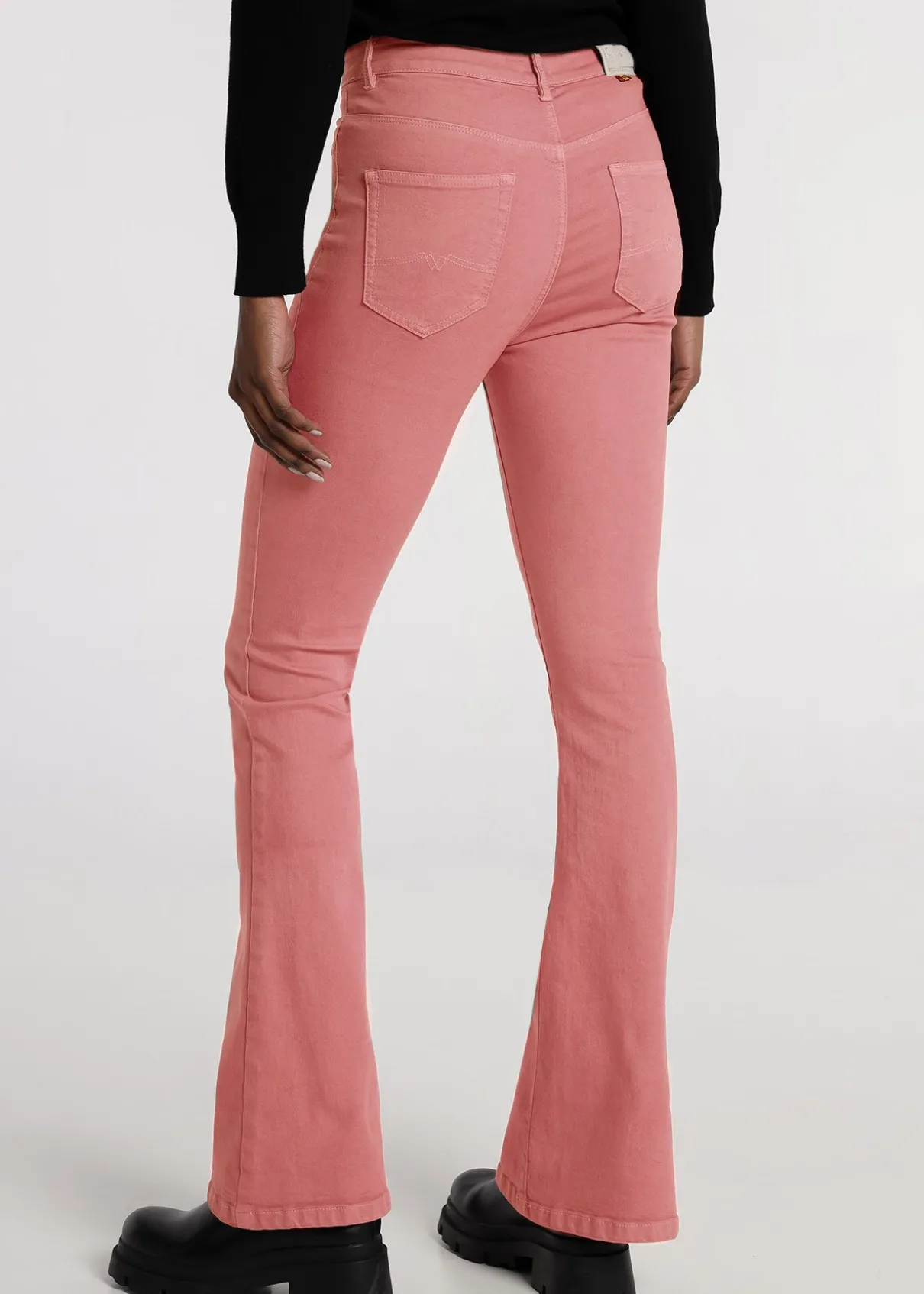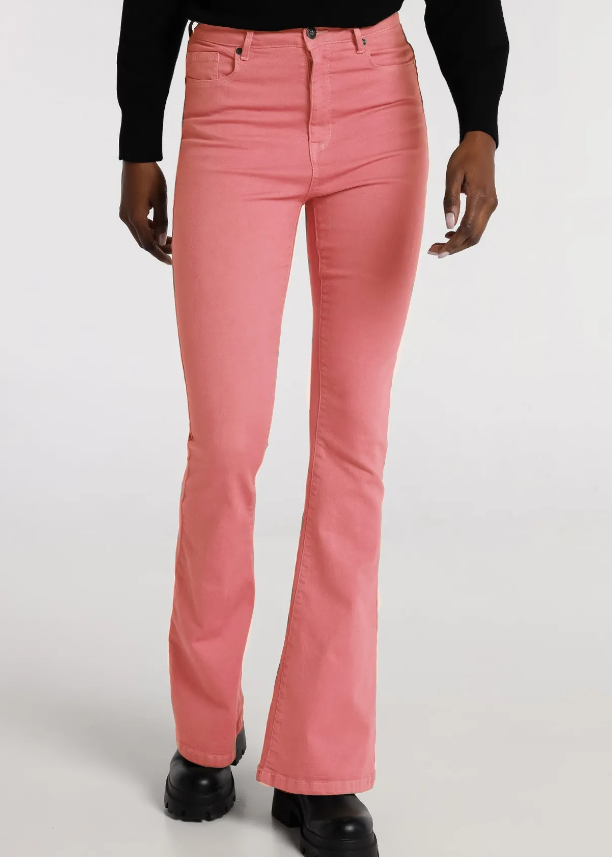 CIMARRON – Jeans – Taille haute Évasé | 132703 Composition : 66,6% COTON 22% POLYESTER 9,4% RAYONNE 2% ÉLASTHANNE Traitement : Lavage max 30º GENRE : Femme Couleur : Rose Type de produit : JEANS Coupe : Flare Fermeture : Zip et bouton Style : Basique Taille : CAJA ALTA
