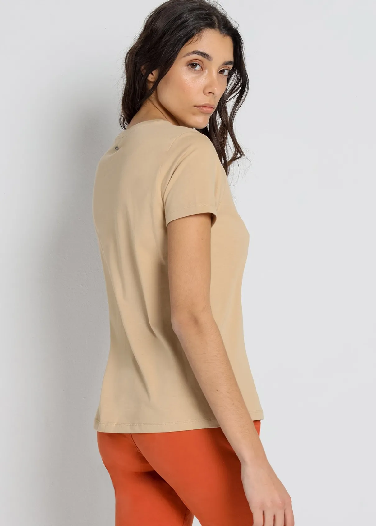 CIMARRON – T-shirt manches courtes Zaya-April | 135310 Composition : 95% Coton 5% Spandex Traitement : Lavage max 30º GENRE : Femme Couleur : Beige Saison : Primavera – Verano Type de produit : CAMISETAS Style : Décontracté Taille : Haute