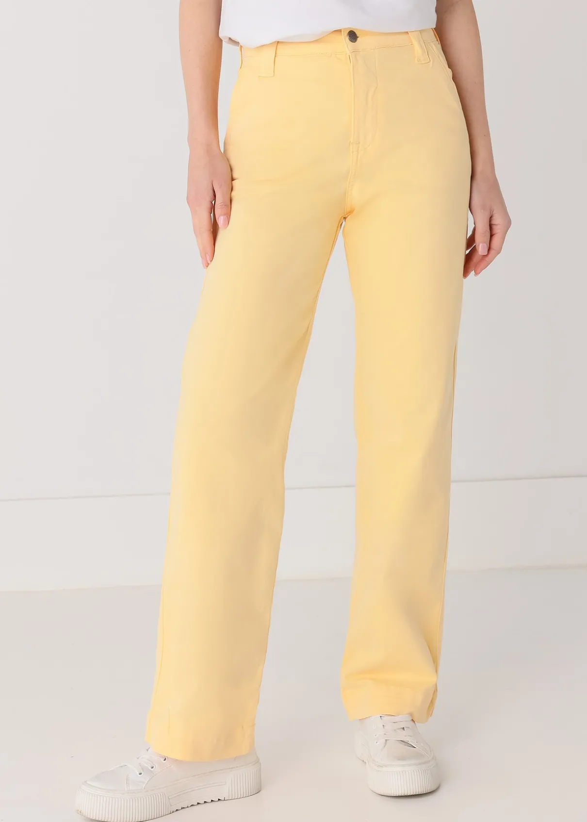 CIMARRON – Chino Olivia Nectar | Taille haute – Coupe large droite | 135006 Composition : 97% COTON 3% ÉLASTHANNE Traitement : Lavage max 30º GENRE : Femme Couleur : Jaune Saison : Primavera – Verano Type de produit : PANTALONES Motif : Straight Wide leg Coupe : Straight Wide Leg Fermeture : Zip et bouton Style : Décontracté Taille : CAJA ALTA
