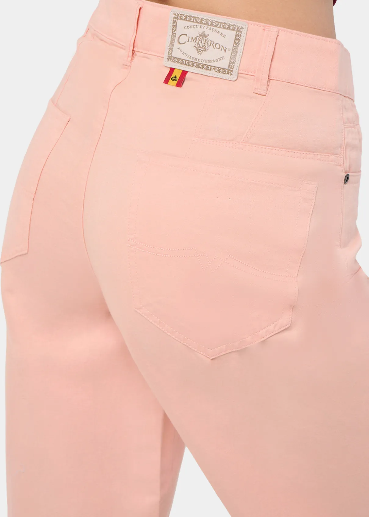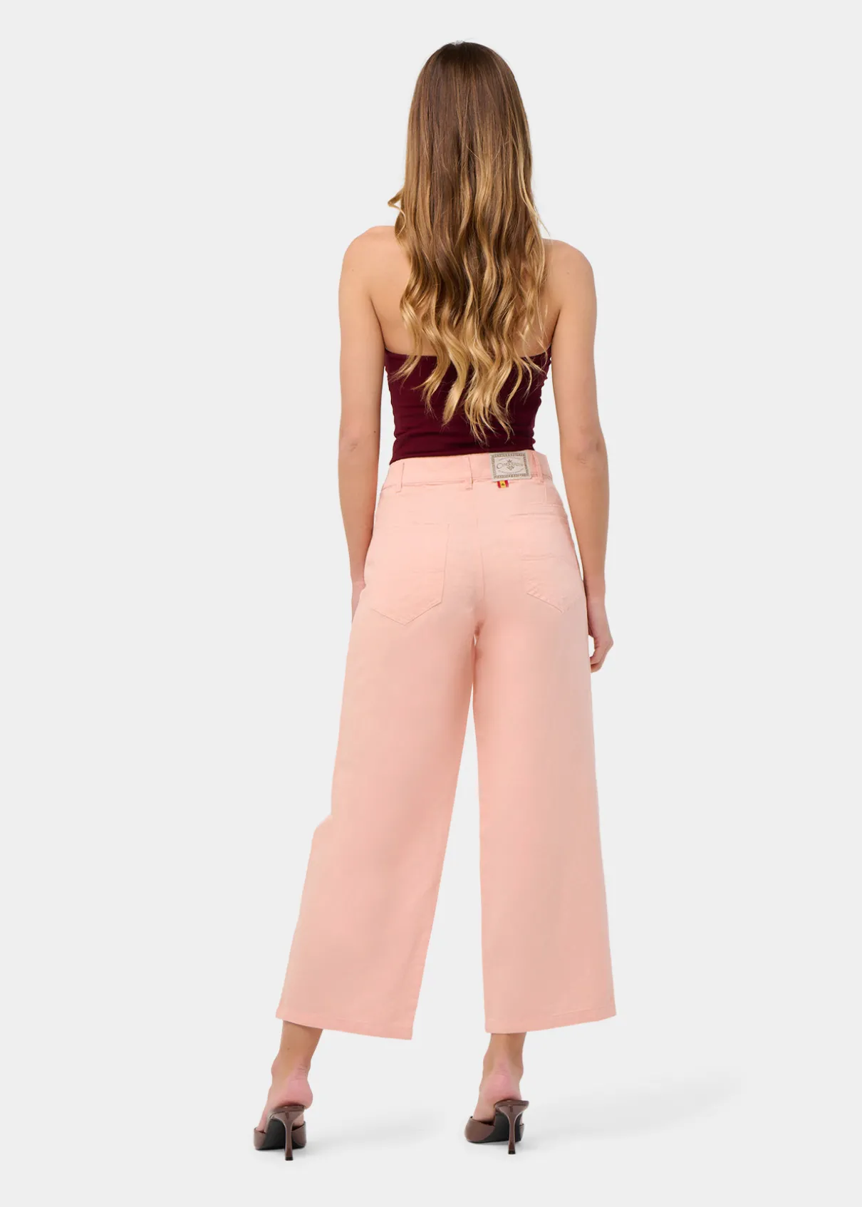 JEAN AURORA-YONNE Medium Box Straight Wide Crop Composition : 50% coton 50% lin Traitement : Lavage max 30º GENRE : Femme Couleur : Rose Type de produit : JEANS Coupe : Straight Wide crop fit Fermeture : Zip et bouton Style : Casual Taille : CAJA MEDIA