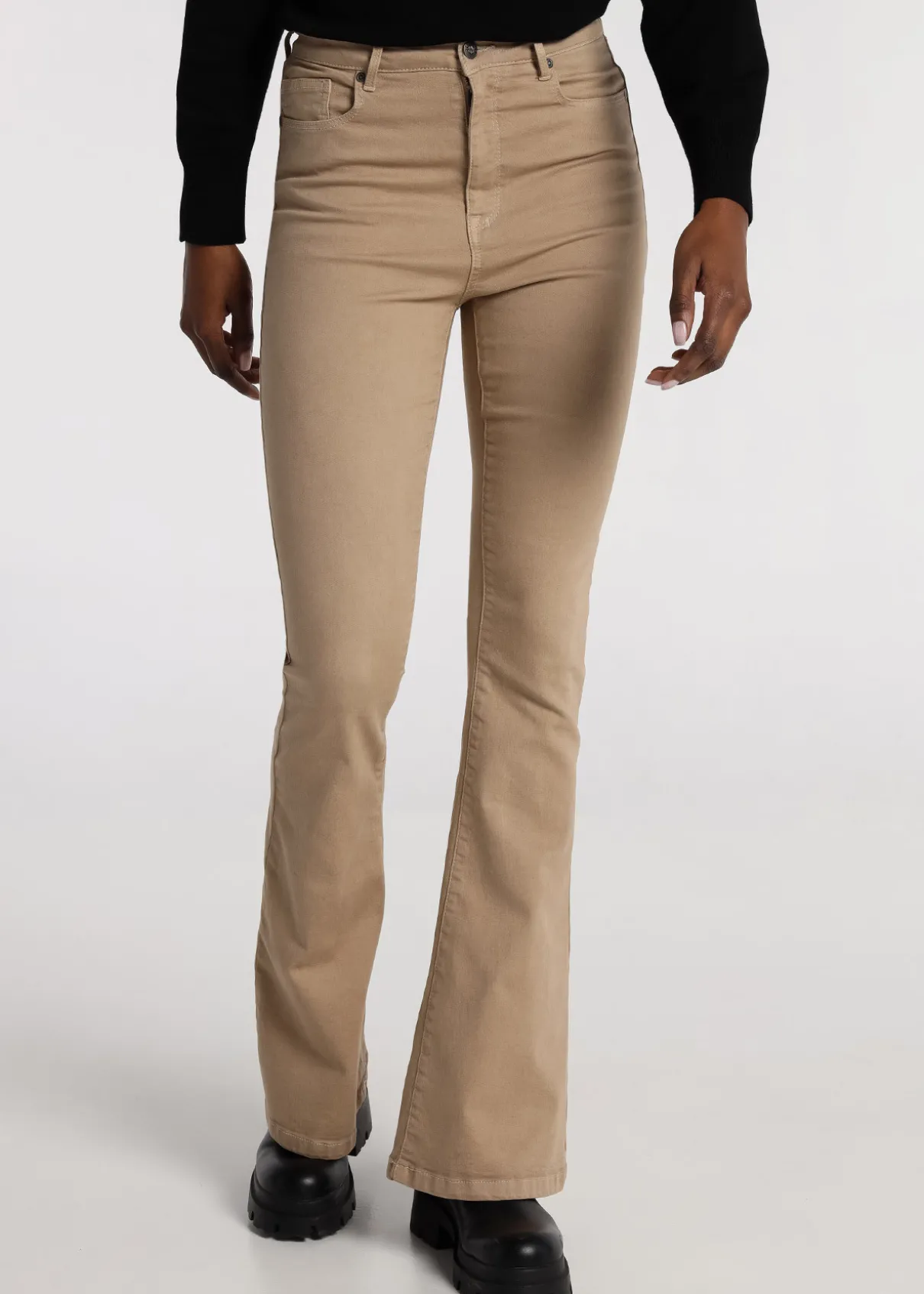 CIMARRON – Jeans – Taille haute Évasé | 131504 Composition : 66,6% COTON 22% POLYESTER 9,4% RAYONNE 2% ÉLASTHANNE Traitement : Lavage max 30º GENRE : Femme Couleur : Beige Type de produit : JEANS Coupe : Flare Fermeture : Zip et bouton Style : Basique Taille : CAJA ALTA